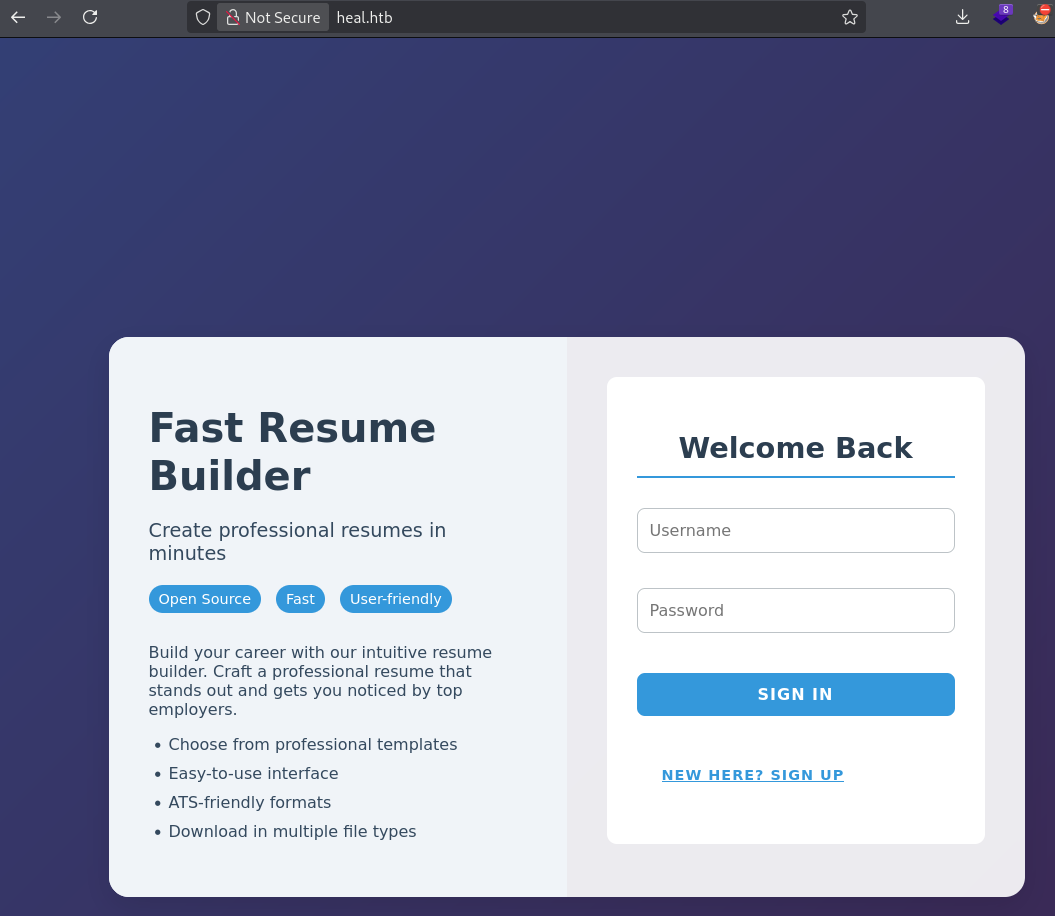 For Sign-up to work, we need to add api.heal.htb subdomain to/etc/hosts: