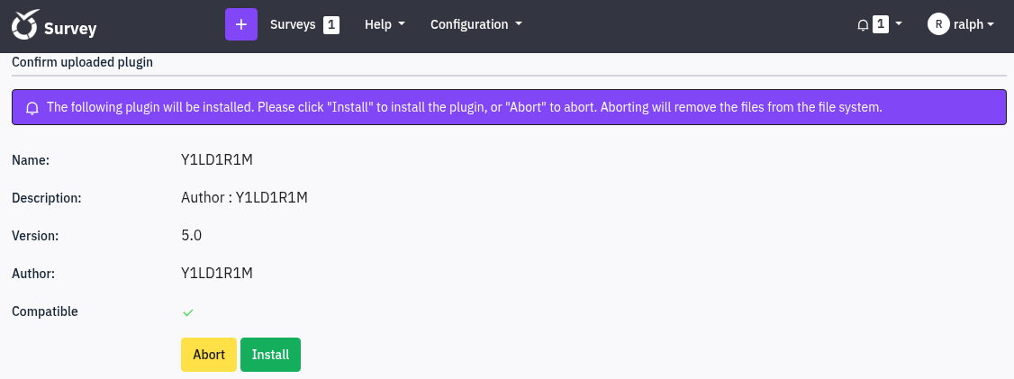 Some additional information about the exploit: https://ine.com/blog/cve-2021-44967-limesurvey-rce