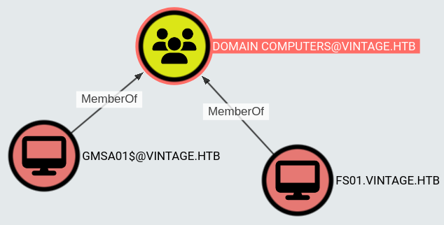 The FS01 machine account has ReadGMSAPassword privileges on GMSA01: